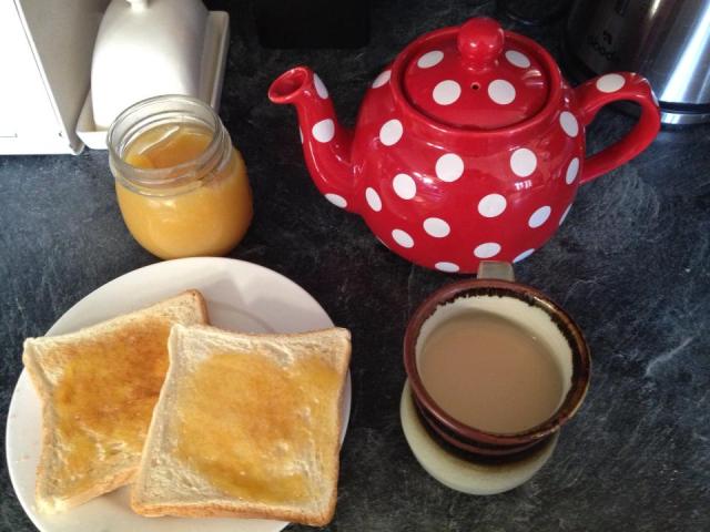 food communion tea and biscuit salad for lunch beers asian noodles tea and toast