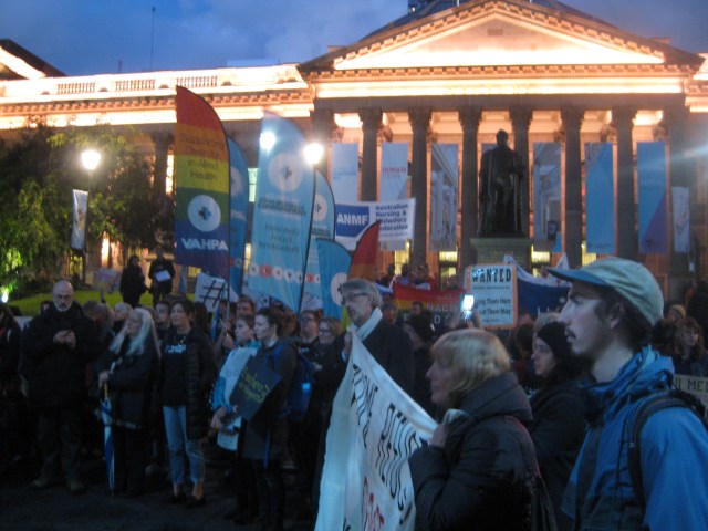 Let them land, let them stay vigil Melbourne State Library 2 May 2017 action vigil by health, education and community work sector supporters close off-shore detention