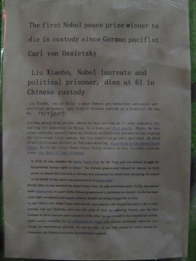 Liu Xiaobo Nobel peace prize winner remembered in Melbourne