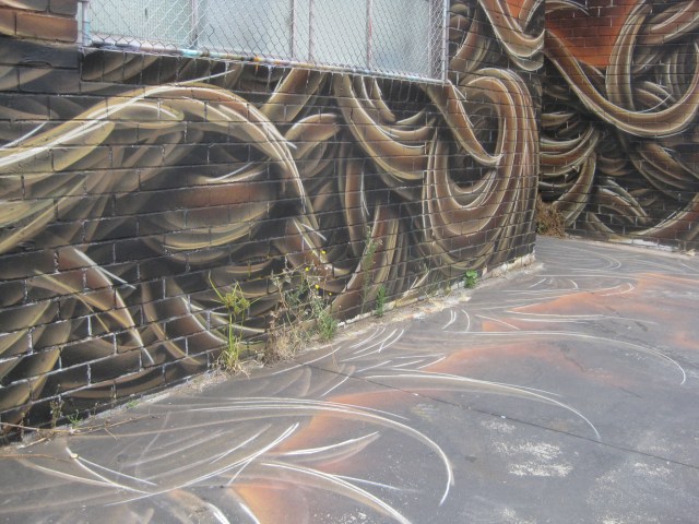 graffiti walk Footscray on the wall and the ground like a reflection brown swirls
