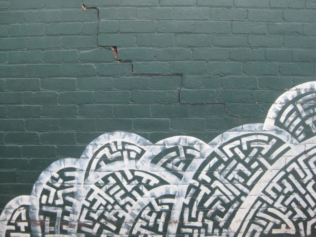 twilight walk home footscray graffiti white circles on a dark green walk geometric shapes