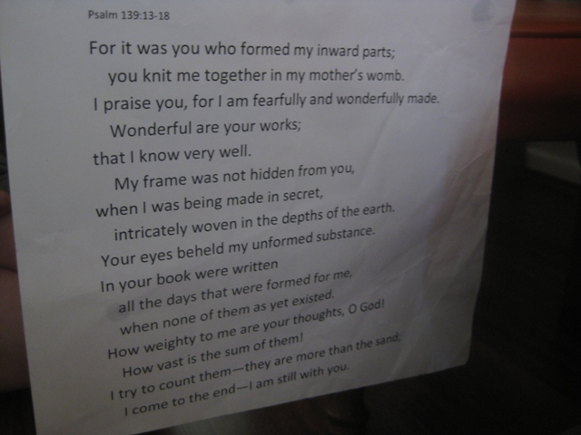 Psalm 139:13-18 for it was you who formed my inward parts; you knit me together in my mother’s womb