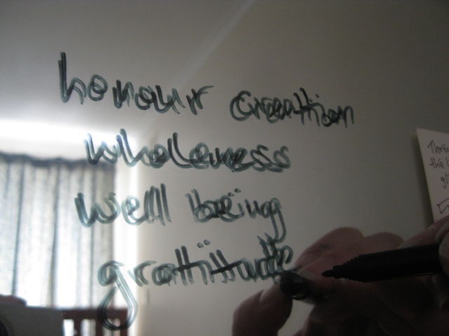 honour creation wholeness wellbeing writing with a whiteboard pen on a mirror