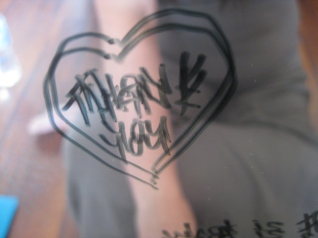 honour creation wholeness wellbeing writing with a whiteboard pen on a mirror thank you