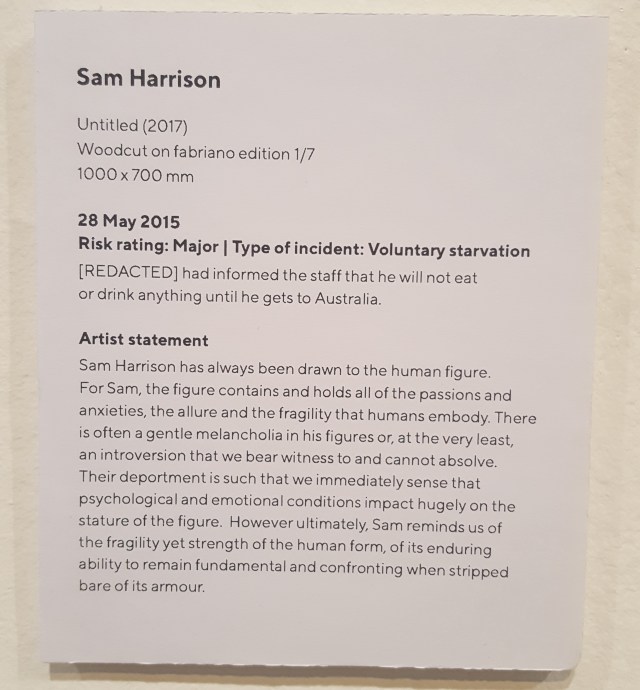all we don’t know exhibition fortyfivedownstairs melbourne August 2018 refugees Nauru files sam Harrison wood etching