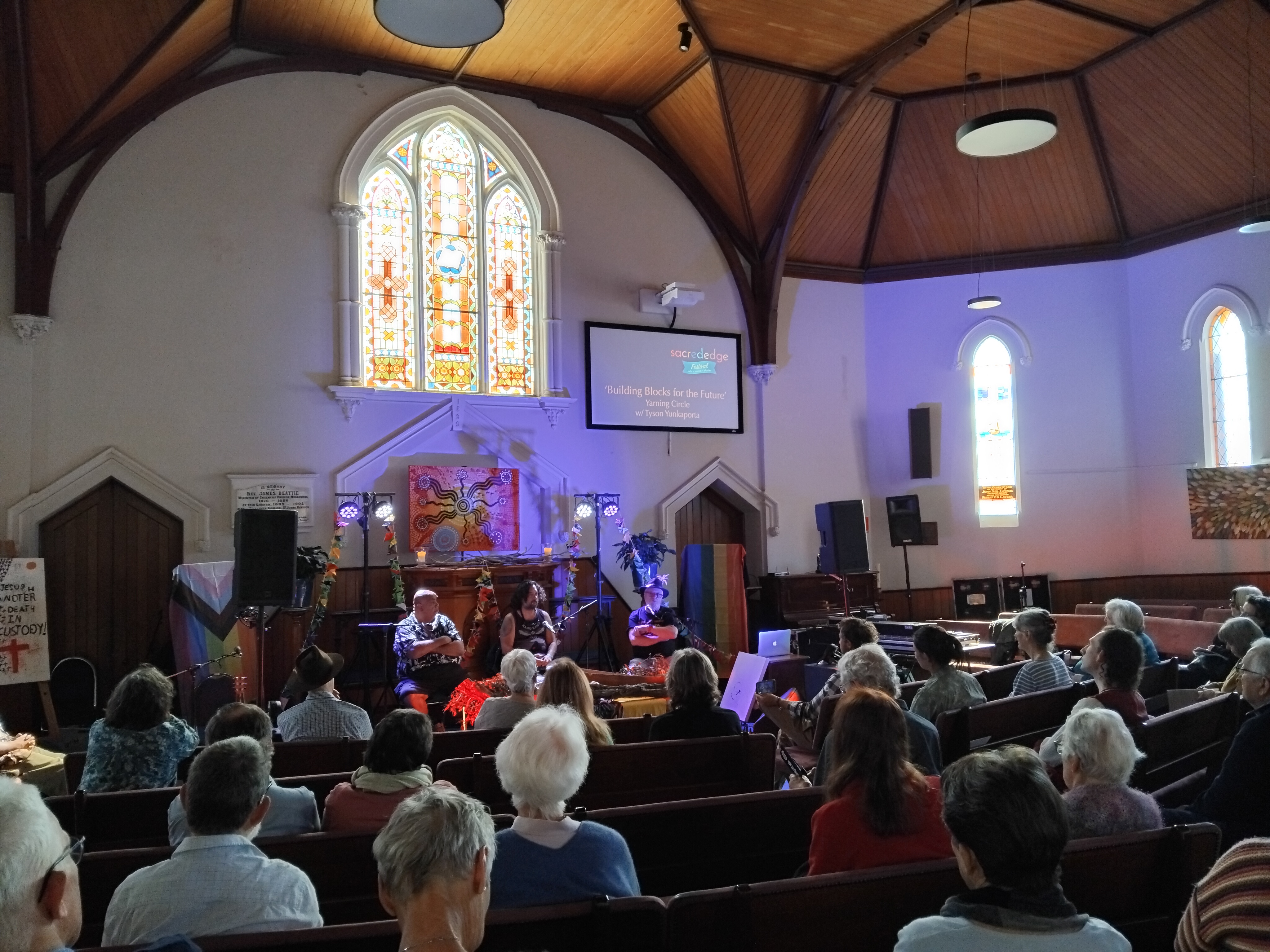We engaged in a couple of different ways at this years Sacred Edge Festival: volunteering, offering a workshop and putting an artwork in the exhibition.