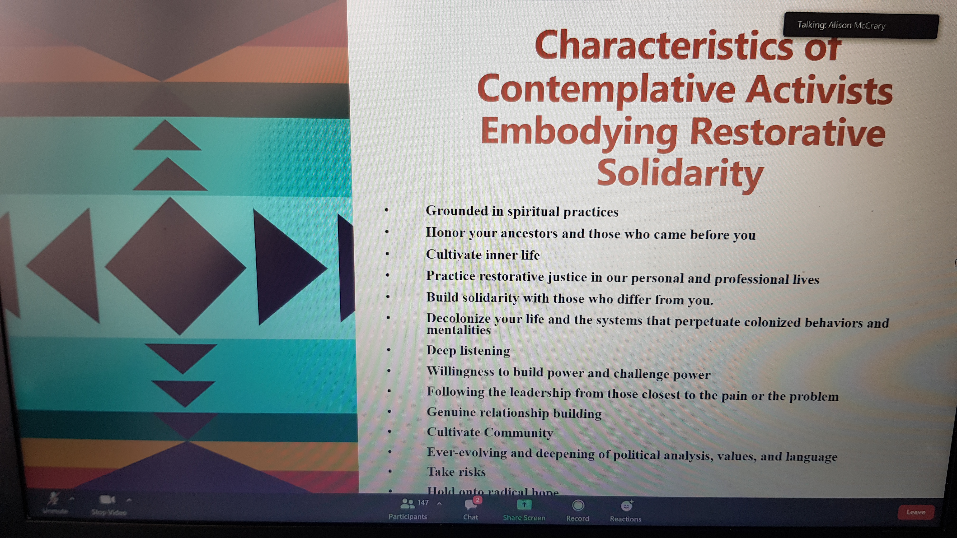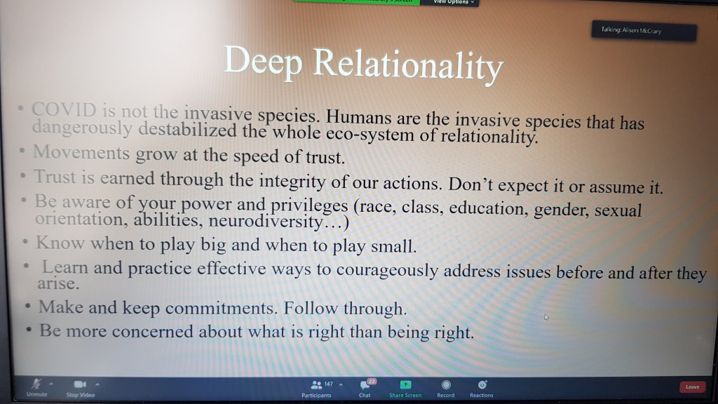 How do we find this land? Can be decolonising your bookcase or wardrobe, clear out the colonised space to make room for new, enter the wild/reconnect. With COVID there is an opportunity while outside of the traditional sanctuary spaces. What does it look like in our churches to create tension around the idea of ‘ownership’. The gift is the opportunity to steward, not the owning. Reparations? Understand that what you have may not always be yours. Jubilee reminds us that who owns and has rights to accumulate/stuff is a temporal state. There is no time like a pandemic to resdistribute.