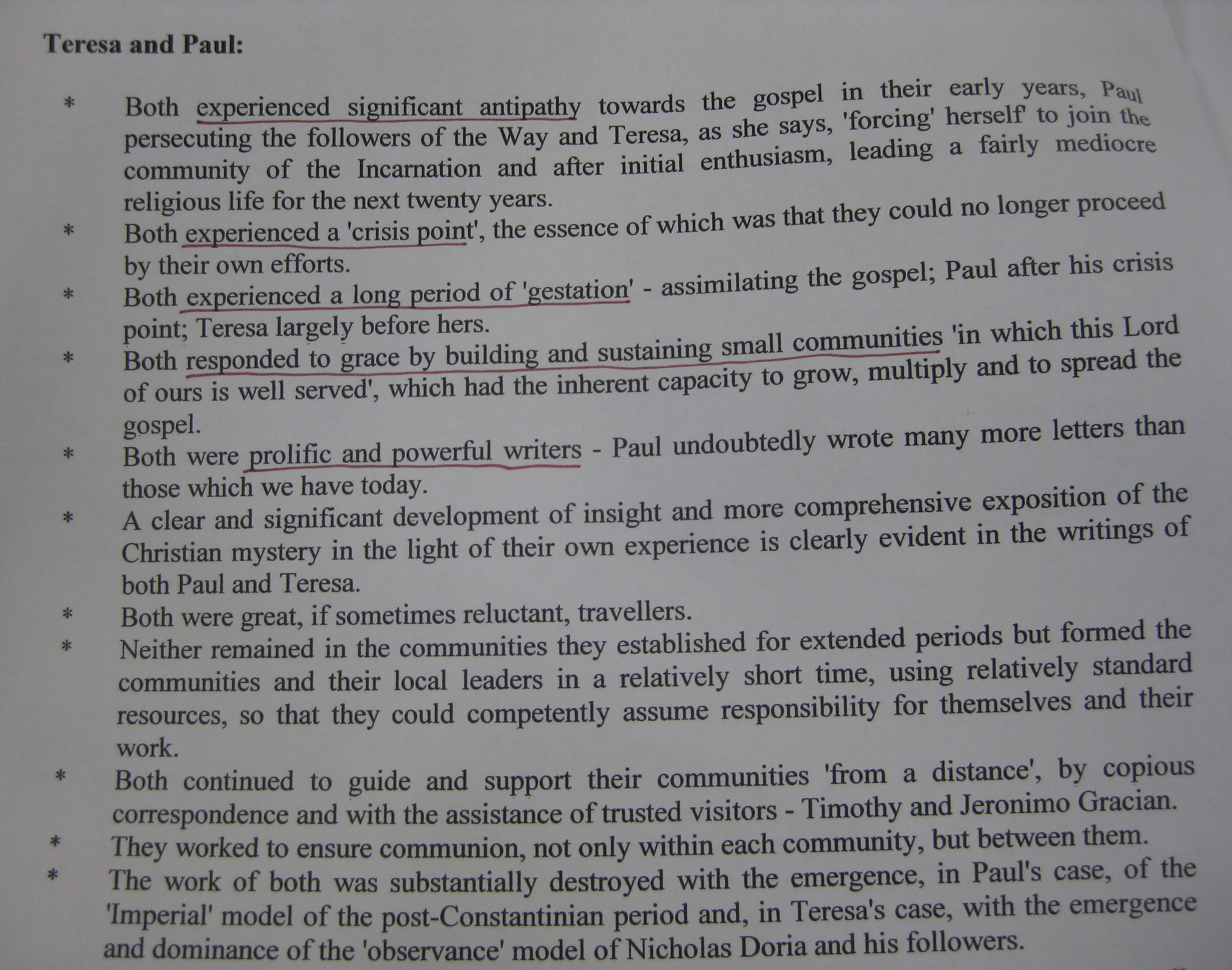 Whether she was explicitly aware of it or not, Teresa established her communities on the same model employed and developed by Paul of Tarsus: