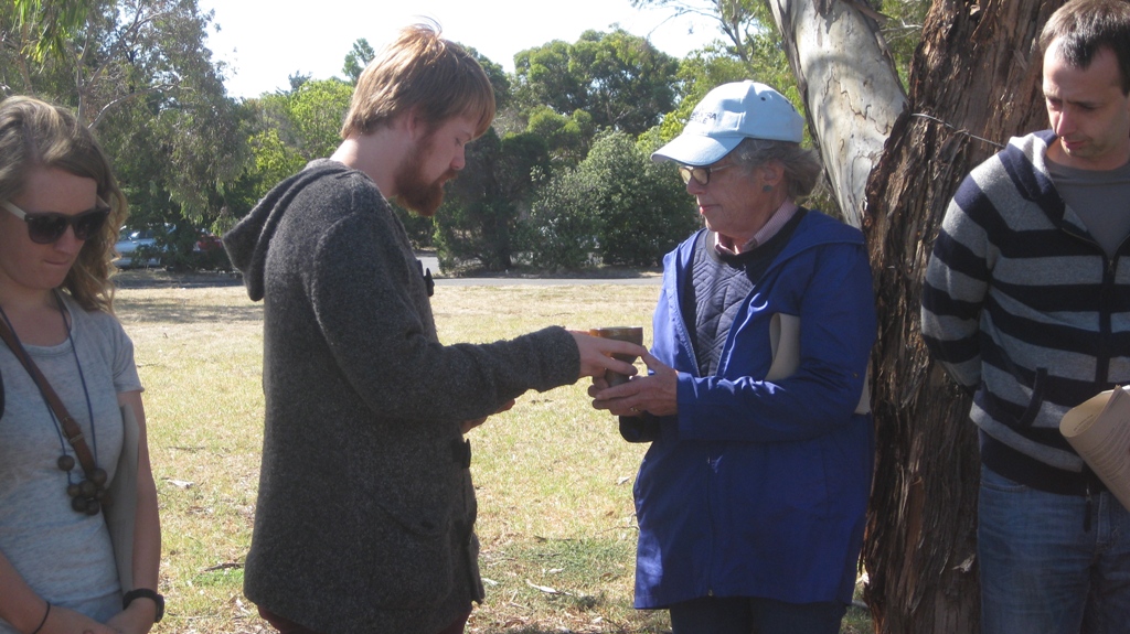 We came back from that conference inspired to imagine what a Stations of the Cross walk might look like for our own context here in Footscray – we went to the Palms Motel where they provide crisis accommodation for people experiencing homelessness, we went to the river and reflected on the impacts of climate change, we came here to the Maribyrnong detention centre … most of you will know of the Christian tradition of communion, sharing bread and wine together, this is done symbolically because Jesus says ‘I won’t eat this again with you until I see you in my Father’s kingdom’. In a church we have communion and we eat it as a reminder of that promise… well, we came here and compared what it must feel like for refugees who take a long and dangerous journey to get here, who expect to find shelter, and safety and hospitality and instead… we passed around an empty cup and an empty plate as a symbol of the kind of hospitality people have experienced arriving here.