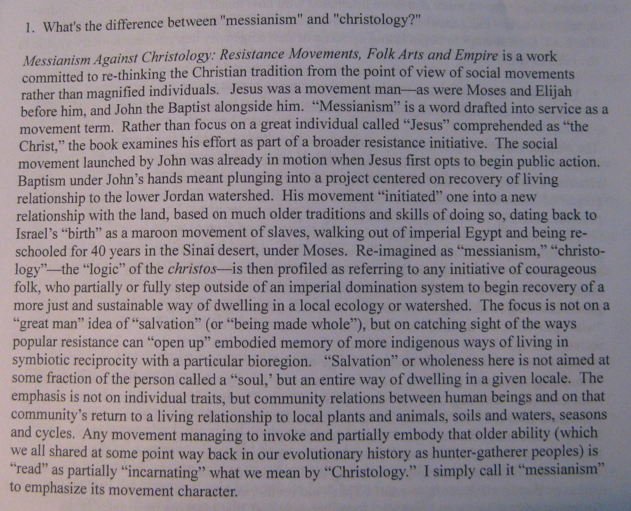 Workshop VI: Messianism vs. Christology – Jim Perkinson