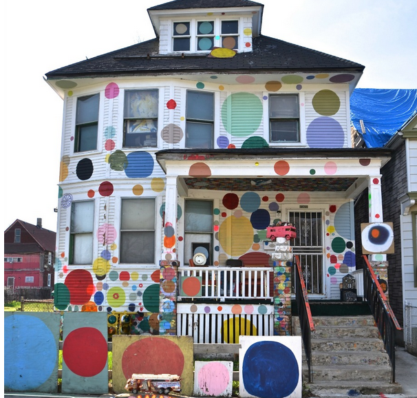 Me. You. God has hundreds of faces. Return wild vitality to them. Jesus puts mud and spit on blind eyes and asks: “Can you see?”. Artists take mud caps and paint and ask us “Can you see?” The project was bulldozed twice and burned nine times – not everyone thinks it’s beautiful. Folk art marking it out as beautiful – as vital. Shocks you into recognition of where you are. Ethnic cleansing is happening through tax/mortgage/water cut offs. Detroit is seen as a blight and a problem. A deep weapon for surviving is codifying beauty out of pain: spirituals/blues/jazz/R&B/gospel/soul/funk/techno/hiphop… old school and underground forms… tagging, breakdancing, turntabling…Pain made into beauty.