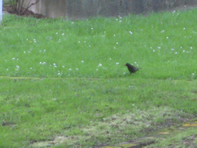 Little black robins dart among the meadow daisies sun-blushed pink tips.