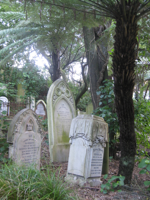 The headstones tilt at varying angles nestled in between trees and ferns, some messy and cracked, some maintained and others washed smoothly illegible by the rains of time.
